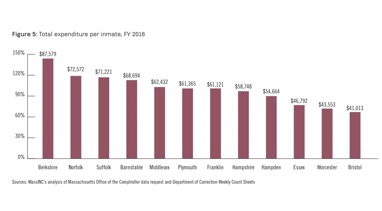 In 2016, Widmer found that the Berkshire County Sheriff’s Office had the highest total expenditure per inmate in the State, at $87,579 per inmate, while Berkshire County itself had the lowest median household income in the State.