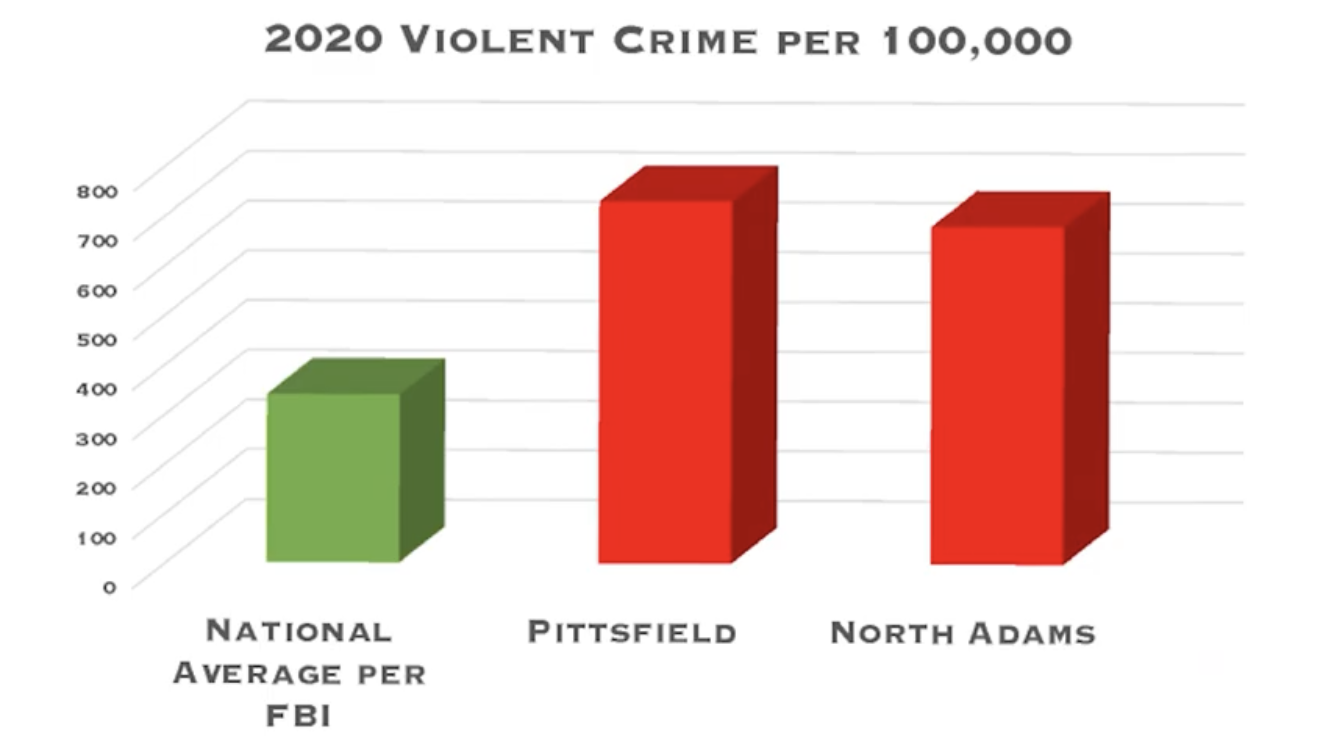 I am concerned about 2020 FBI crime statistics rankings which show two communities in Berkshire County placing in the top ten per capita crime lists in the Commonwealth. Here is the top 10 per capita crime list in Massachusetts, published by the Road Snacks website, compiled from 2022 FBI Uniform Crime Statistics reports. 7 of the 10 communities on the per capita crime lists are in Western Massachusetts: